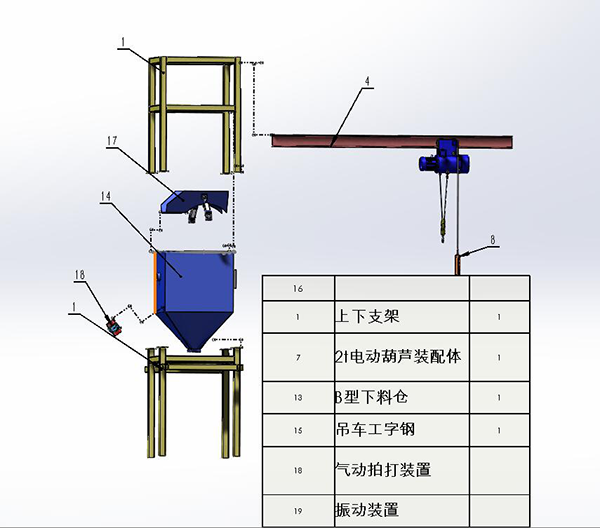 振(zhèn)動裝置:振動下(xià)料倉使倉內的完全物料下落,減少倉內的物料下(xià)落時間。