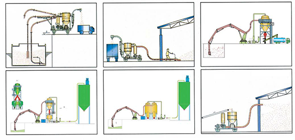 風機(jī)進口產(chǎn)生一定負壓力物料從吸嘴(zuǐ)吸入,運(yùn)送到分離器,物料在重力作用下進入卸料器,在電機帶動下均(jun1)勻供料。風(fēng)機(jī)出口產生一定壓(yā)力的高壓氣體,攜(xié)帶物料運送到指定位置。